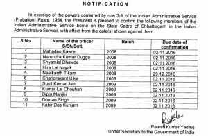 11 Officers of 2008 and 2009 batches from Chhattisgarh confirmed in Indian Administrative Service