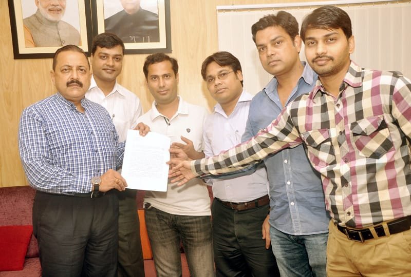 A delegation of “Prasar Bharati” Contractual Employees handing over a memorandum to the Minister of State for Development of North Eastern Region (I/C), Prime Minister’s Office, Personnel, Public Grievances & Pensions, Department of Atomic Energy, Department of Space, Dr. Jitendra Singh, in New Delhi on July 20, 2015.