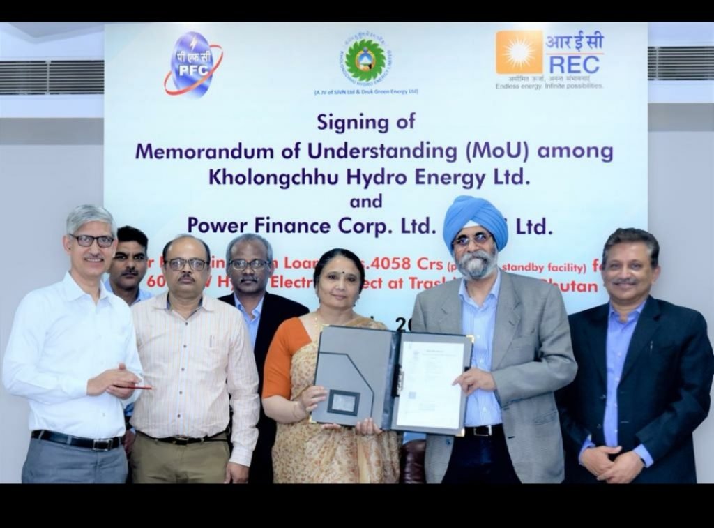 Power Finance Corporation Ltd. (PFC) along with REC Ltd. signed a Memorandum of Understanding (MoU) with Kholongchhu Hydro Energy Ltd (KHEL) for extending a Term Loan of Rs.4058 Crore for 600 MW Hydro Electric Project at Trashi Yangtse, Bhutan. The project is proposed to be funded in a debt-equity ratio of 70:30 and the Term loan of Rs.4058 Crore shall be shared by PFC and REC in equal proportion. Apart from PFC and REC, Rs. 400 crore is proposed to be arranged from Bank of Bhutan (Rs. 200 Crore) and NPPF, Bhutan (Rs. 200 Crore).