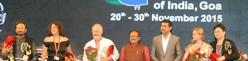 Jury Members being felicitated by the Chief Minister of Goa, Shri Laxmi Kant Parsekar and the Minister of State for Information & Broadcasting, Col. Rajyavardhan Singh Rathore, at the closing ceremony of the 46th International Film Festival of India (IFFI-2015), in Panaji, Goa on November 30, 2015