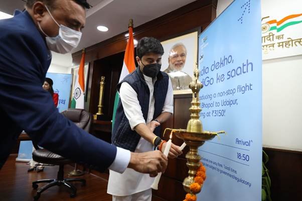 Minister of Civil Aviation, Shri Jyotiraditya Scindia inaugurates direct flight between Bhopal and Udaipur
