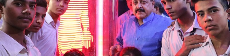 The Minister of State for Development of North Eastern Region (I/C), Prime Minister’s Office, Personnel, Public Grievances & Pensions, Atomic Energy and Space, Dr. Jitendra Singh in a group photograph with the students and children during the visit to the “Hall of Nuclear Power”, at Pragati Maidan, in New Delhi on November 06, 2016.