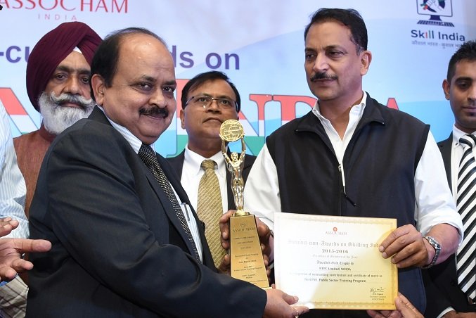 NTPC has been conferred prestigious Gold Trophy & Certificate of Merit of “ASSOCHAM Award 2015-16” and adjudged “Best PSU” for implementing vocational training programmes in PSU Category. The Award was received by Shri U. P. Pani, Director (HR) from Shri Rajiv Pratap Rudy, Hon’ble Minister of State (I/C) for Skill Development, Entrepreneurship & Parliamentary Affairs on 15th March, 2016 during “Summit-cum-Award on Skilling India” in New Delhi.