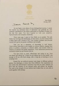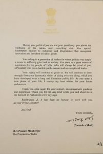 Former President Pranab Mukherjee shares the letter from PM, received on his last day in office as the President