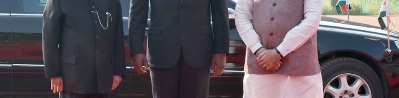 The President, Shri Pranab Mukherjee and the Prime Minister, Shri Narendra Modi with the President of Kenya, Mr. Uhuru Kenyatta at the ceremonial reception, at Rashtrapati Bhavan, in New Delhi on January 11, 2017.