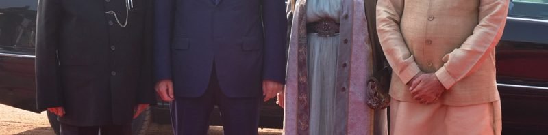 The President, Shri Pranab Mukherjee and the Prime Minister, Shri Narendra Modi with the President of the Republic of Kyrgyzstan, Mr. Almazbek Sharshenovich Atambayev, at the ceremonial reception, at Rashtrapati Bhavan, in New Delhi on December 20, 2016.