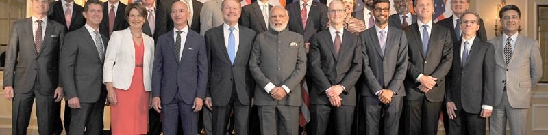 The Prime Minister, Shri Narendra Modi in a group-photograph with the US Business Leaders, at Washington DC, USA on June 25, 2017
