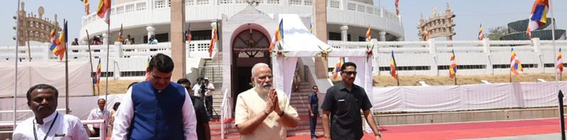 The Prime Minister, Shri Narendra Modi visiting Deekshabhoomi, on the occasion of Ambedkar Jayanti, in Nagpur on April 14, 2017. The Chief Minister of Maharashtra, Shri Devendra Fadnavis is also seen.