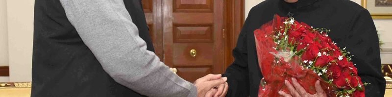 The Prime Minister, Shri Narendra Modi greeting the President, Shri Pranab Mukherjee, on the occasion of New Year, at Rashtrapati Bhavan, in New Delhi on January 01, 2017.