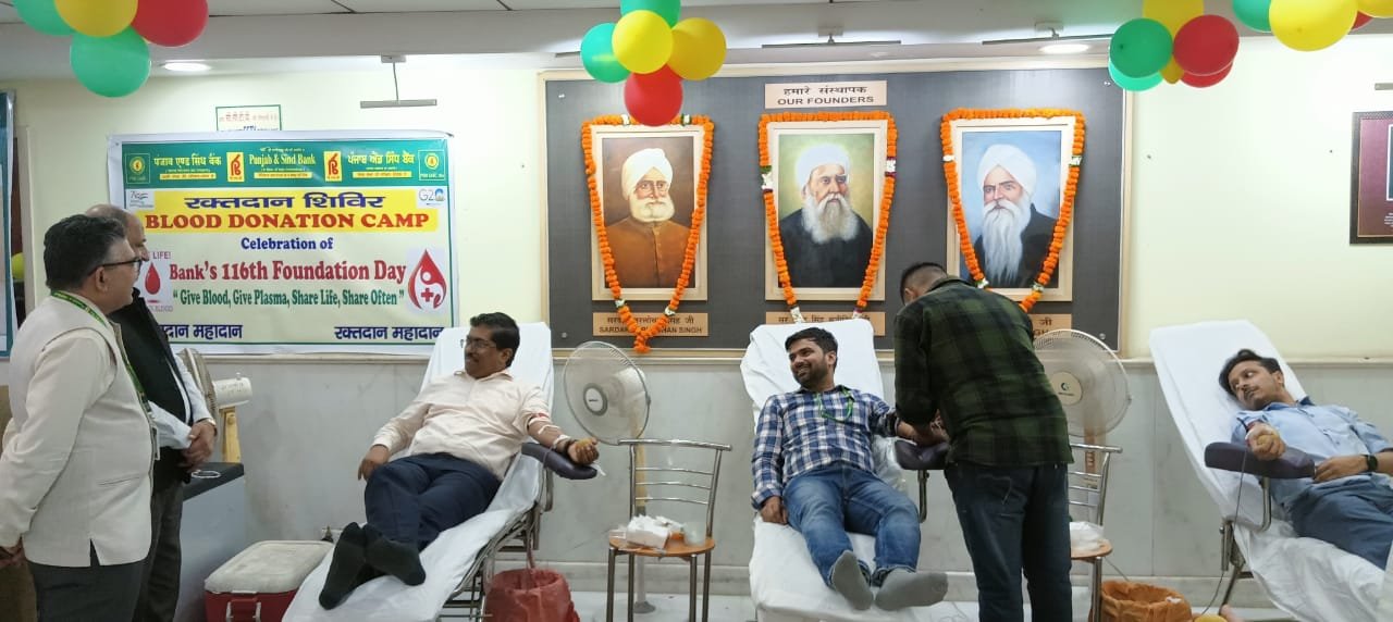 On the eve of its 116th Foundation Day, Punjab & Sind Bank , one of the leading Public Sector Bank, organized Blood donation Camp at its Head Office. The Blood Donation Camp was inaugurated by Shri Swarup Kumar Saha, MD & CEO. Speaking on the occasion Shri Saha said that it is a unique opportunity for the donors to donate their blood to save a life and urged the community to donate blood at regular intervals as blood donation is considered one of the best ways of helping the mankind. The camp witnessed active participation from staff members who volunteered to donate blood for this noble cause. In this camp more than 116 donors donated their blood. The slogan of the campaign was ” Give Blood, Give Plasma, Share Life, Share Often “. Through this blood donation camp, Bank aims to raise awareness for the need of safe blood and blood products and to thank voluntary blood donors for their life-saving gifts of blood.