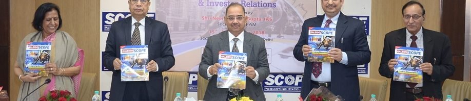NEW DELHI: Shri Neeraj Kumar Gupta, IAS, Secretary, DIPAM released the Special Issue of Kaleidoscope on “Emerging Paradigms in Financial Communication and Investor Relations” coinciding with the two-day Seminar on Investor Relations organized by SCOPE. Also present on the occasion were Dr. U.D. Choubey, Director General, SCOPE, Shri Nagendra Parakh, Executive Director, SEBI, Prof. Jaishri Jethwaney, ISID and Programme Director and others.