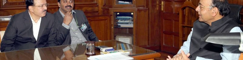 Shri Arun Jaitley interacting with the Minister of State for Defence, Dr. Subhash..