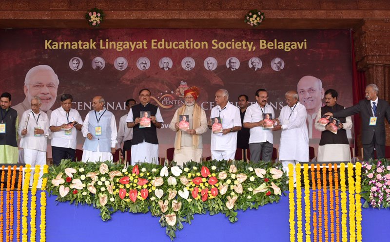 The Prime Minister, Shri Narendra Modi releasing the book at Karnataka Lingayat Education Society Centenary Celebrations, in Belagavi, Karnataka on November 13, 2016.