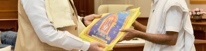 Shri Sitaram Kedilaya calls on the Prime Minister, Shri Narendra Modi after successful completion of Bharat Parikrama Padyatra, in New Delhi on August 11, 2017.