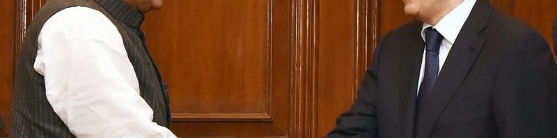 The Director of the Federal Security Service, Russia, Mr. Alexander Bortnikov calling on the Union Home Minister, Shri Rajnath Singh, in New Delhi on March 24, 2017.