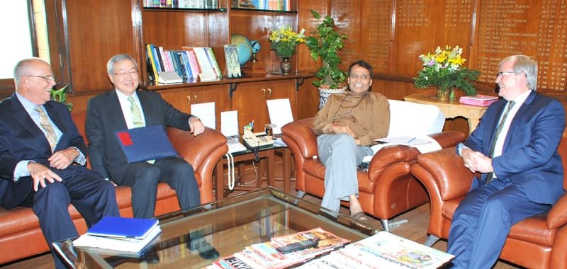 The former Prime Minister of Australia, Mr. Kevin Rudd meeting the Union Minister for Railways, Shri Suresh Prabhakar Prabhu, in New Delhi on September 02, 2015