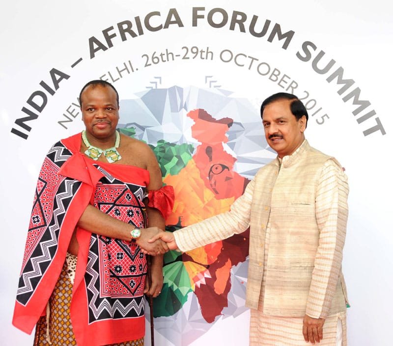The King Maswati III of Swaziland being received by the Minister of State for Culture (Independent Charge), Tourism (Independent Charge) and Civil Aviation, Dr. Mahesh Sharma, on his arrival, in New Delhi on October 26, 2015