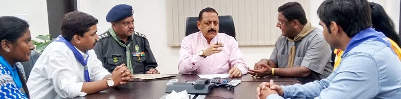 The Minister of State for Development of North Eastern Region (I/C), Youth Affairs and Sports (I/C), Prime Minister’s Office, Personnel, Public Grievances & Pensions, Atomic Energy and Space, Dr. Jitendra Singh holding a meeting with a delegation of Scouts/Guides Organisation of India, in New Delhi on July 03, 2016.