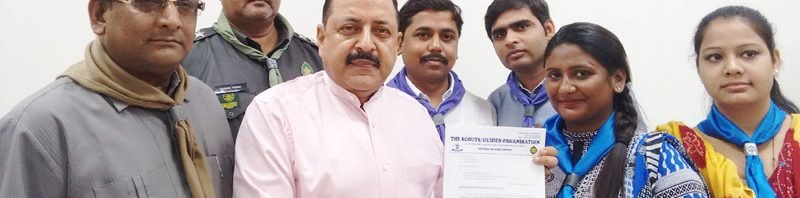 The Minister of State for Development of North Eastern Region (I/C), Youth Affairs and Sports (I/C), Prime Minister’s Office, Personnel, Public Grievances & Pensions, Atomic Energy and Space, Dr. Jitendra Singh receiving a memorandum from a delegation of the Scouts/Guides Organisation of India, in New Delhi on July 03, 2016.