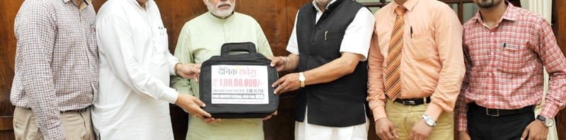 The Minister of State for Social Justice & Empowerment, Shri Vijay Sampla calling on the Prime Minister, Shri Narendra Modi and presented him drafts worth Rs. 1 Crore towards the Prime Minister Nation Relief Fund (PMNRF), in New Delhi on August 11, 2015