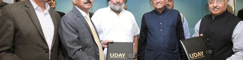 The Minister of State (Independent Charge) for Power, Coal and New and Renewable Energy, Shri Piyush Goyal and the Deputy Chief Minister of Punjab, Shri Sukhbir Singh Badal witnessing the signing ceremony of a tripartite MoU with the State of Punjab on “UDAY” (Ujwal Discom Assurance Yojana) for operational and Financial turnaround of Discoms, in New Delhi on March 04, 2016.