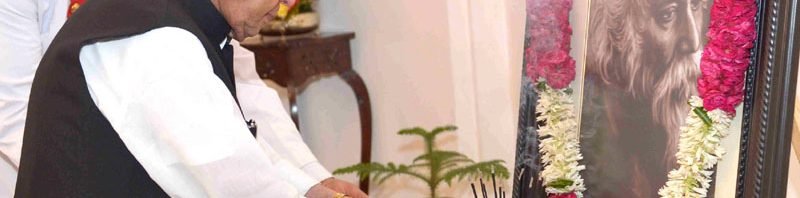 The President, Shri Pranab Mukherjee paying floral tributes at the portrait of Gurudev Rabindranath Tagore on his Birth Anniversary, at Rashtrapati Bhavan, in New Delhi on May 08, 2016.