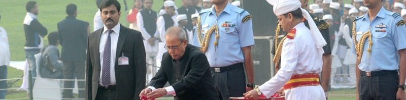 The President, Shri Pranab Mukherjee paying floral tributes at the Samadhi of the former Prime Minister, Pandit Jawaharlal Nehru on his 126th birth anniversary, at Shantivan, in Delhi on November 14, 2015.