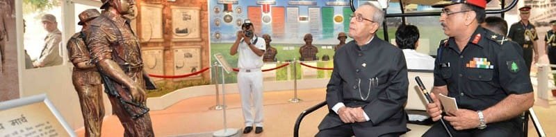 The President, Shri Pranab Mukherjee visiting the ‘Shauryanjali’, a commemorative ..