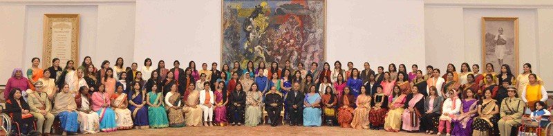 The President, Shri Pranab Mukherjee with the Women Achievers of India selected by the Ministry of Women & Child Development in collaboration with Facebook vide contest through Public Nominations, at Rashtrapati Bhavan, in New Delhi on January 22, 2016. The Union Minister for Women and Child Development, Smt. Maneka Sanjay Gandhi is also seen.