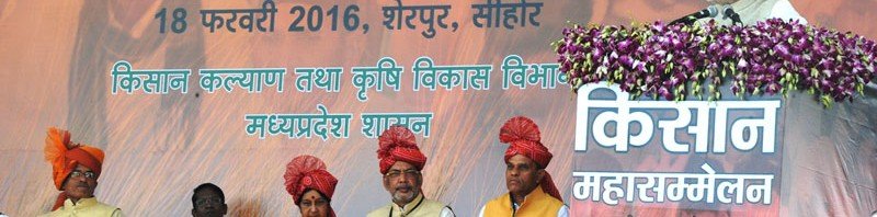The Prime Minister, Shri Narendra Modi addressing the gathering at Kisan Kalyan Mela, in Sehore, Madhya Pradesh on February 18, 2016. The Chief Minister of Madhya Pradesh, Shri Shivraj Singh Chouhan and the Union Ministers are also seen