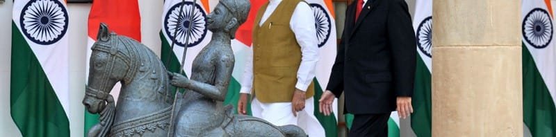 The Prime Minister, Shri Narendra Modi and the President of the Republic of Seychelles, Mr. James Alix Michel, at Hyderabad House, in New Delhi on August 26, 2015.