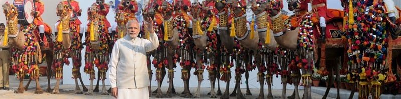 The Prime Minister, Shri Narendra Modi at the alighting point for leaders to receive ..