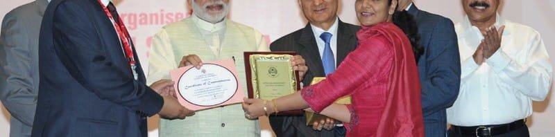 The Prime Minister, Shri Narendra Modi felicitating the best district legal service authority and para-legal volunteers from each region and national level, at the observance of Legal Services Day and Commendation Ceremony, in New Delhi on November 09, 2015. The Union Minister for Law & Justice, Shri D.V. Sadananda Gowda, the Judge of Supreme Court of India and Executive Chairman NALSA, T.S. Thakur and other dignitaries are also seen.