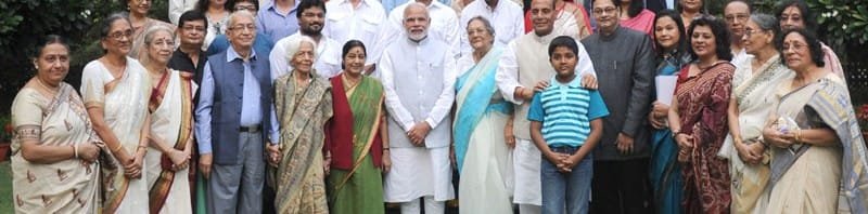 The Prime Minister, Shri Narendra Modi in a group photograph with the family members of Netaji Subhas Chandra Bose, at 7 Race Course Road, in New Delhi on October 14, 2015