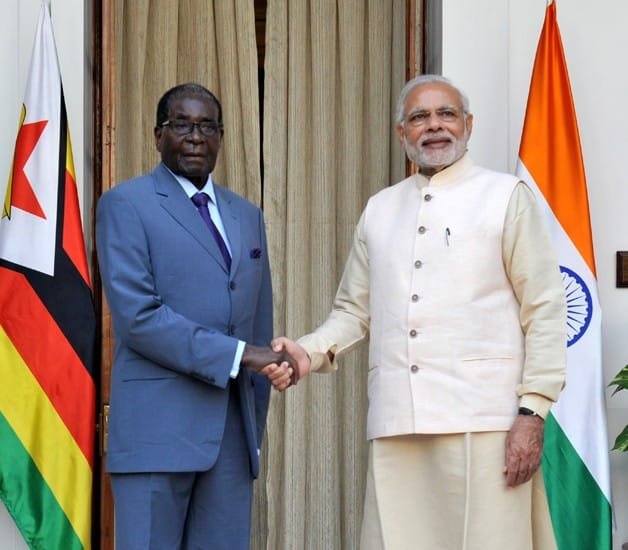 The Prime Minister, Shri Narendra Modi meeting the President of the Republic of Zimbabwe, Mr. Robert Gabriel Mugabe, during the 3rd India Africa Forum Summit, in New Delhi