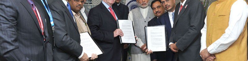 The Prime Minister, Shri Narendra Modi witnessing the exchange of MoUs, on the..