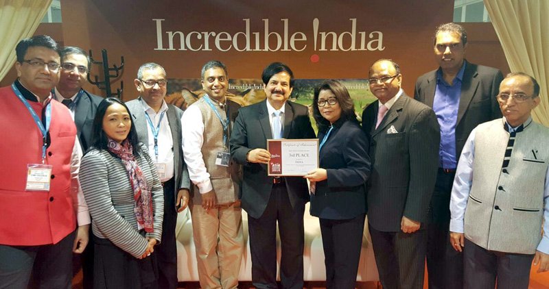 The Secretary, Ministry of Tourism, Shri Vinod Zutshi with the Members of Indian team displaying the Award Certificate presented to India Tourism, India gets the Award of “3rd Best Tourism Destination in Asia for 2016”, in ITB, Berlin, Germany March 12, 2016.
