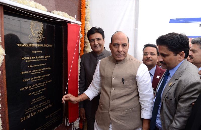 The Union Home Minister, Shri Rajnath Singh inaugurating the Quasquicentennial ground on the occasion of 125th Anniversary of Delhi Bar Association, in New Delhi on December 18, 2015.