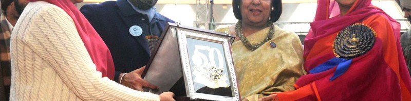 The Union Minister for Minority Affairs, Dr. Najma A. Heptulla being presented a memento at the Golden Jubilee Celebration of Guru Harkishan Public School, in New Delhi on February 05, 2016. The Union Minister for Food Processing Industries, Smt. Harsimrat Kaur Badal is also seen
