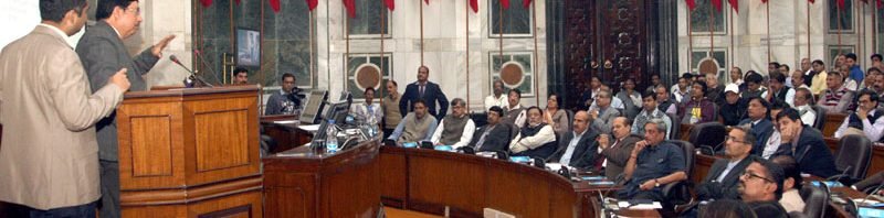 The Union Minister for Defence, Shri Manohar Parrikar along with senior officials and staff of the Ministry of Defence, attending a presentation on ‘Digital Payments’, conducted by the NITI Aayog, in New Delhi on December 06, 2016.