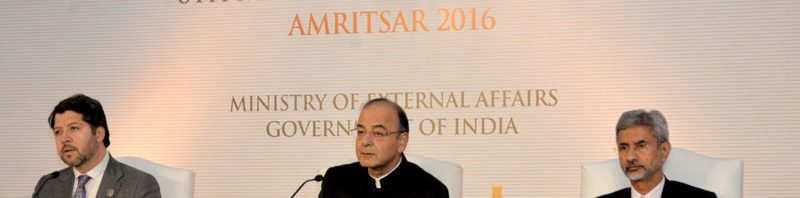 The Union Minister for Finance and Corporate Affairs, Shri Arun Jaitley and the Deputy Foreign Minister of Afghanistan, Mr. Hekmat Khalil Karzai at a joint press conference, during the Heart of Asia Ministerial Conference, in Amritsar, Punjab on December 04, 2016. The Foreign Secretary, Dr. S. Jaishankar is also seen.