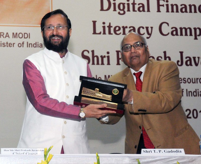 The Union Minister for Human Resource Development, Shri Prakash Javadekar being presented a memento at the Digital Financial Literacy Campaign, at Hindu College, University of Delhi on January 05, 2017.