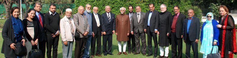 The Vice President, Shri M. Hamid Ansari with the delegation of American Federation of Muslims of Indian Origin led by Dr. A.S. Nakadar, in New Delhi on January 02, 2017.