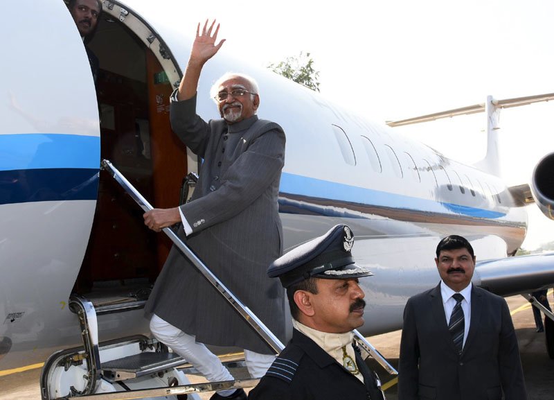 The Vice President, Shri M. Hamid Ansari emplanes for New Delhi after..