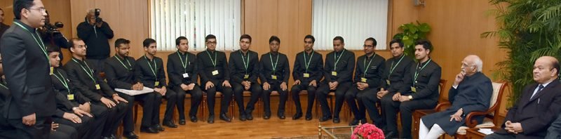 The Vice President, Shri M. Hamid Ansari interacting with the Officer Trainees of the Indian Telecom Service (ITS) Group A of 2014 Batch, who called on him, in New Delhi on January 10, 2017.
