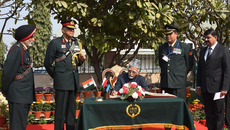 The Vice President, Shri M. Hamid Ansari signing the visitor’s book at the inauguration of the NCC Republic Day Camp 2017, in New Delhi on January 06, 2017. The Director General, NCC, Lt. Gen. Vinod Vashisht is also seen.