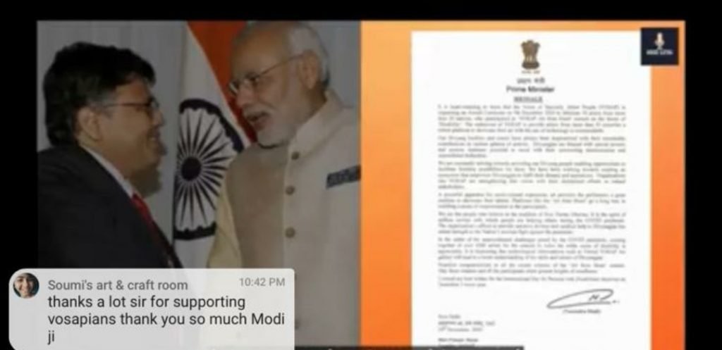 In a letter to founder Shri Pranav Desai, Honourable PM of India, Shri Narendra Modi congratulated 50 winners and letter stated that it is heartening to see tech interventions like VOSAP Virtual Art Gallery will lead to better understanding of skills and talents of Divyangjan.